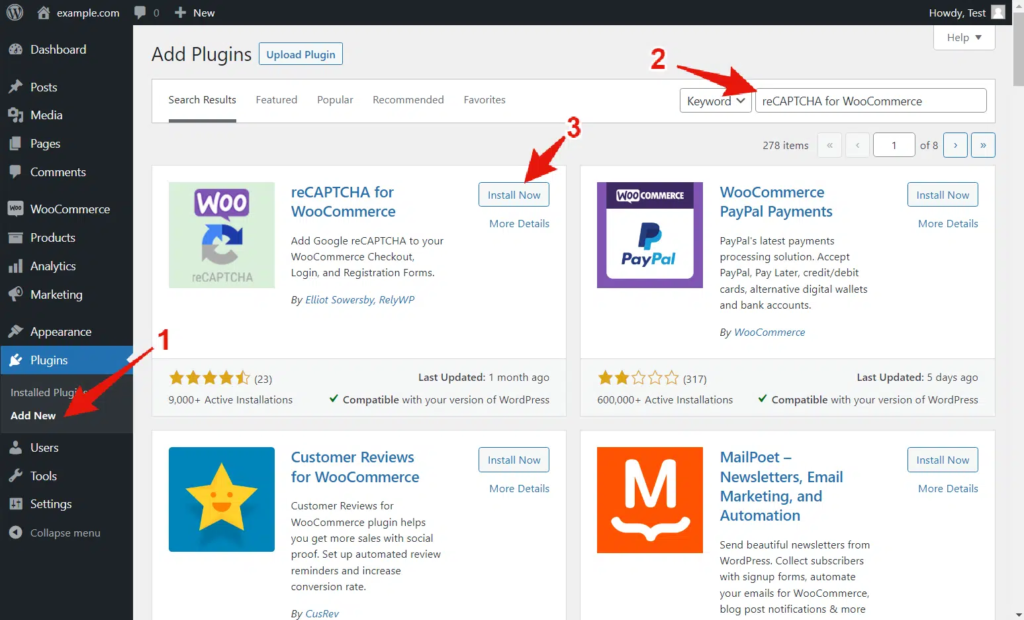 现在您需要将免费的“ reCAPTCHA for WooCommerce ”插件安装到您的网站上。