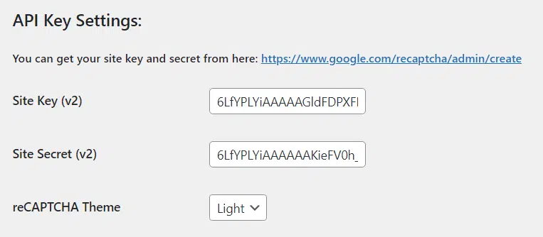 只需复制您之前生成的站点密钥和秘密密钥,然后将它们粘贴到设置字段中即可。