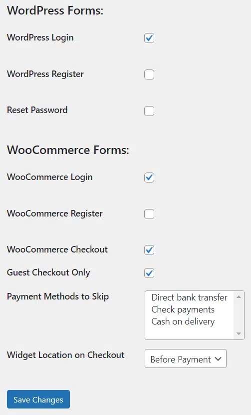 您可以在这里为所有 WordPress 和 WooCommerce 表单启用 reCAPTCHA。