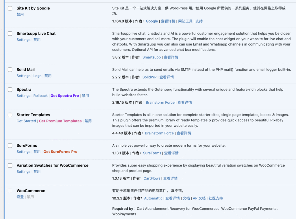 默认安装的插件清单 发表评论 / 独立站设置 / 作者: 一个哲学家 518元搭建的独立站,会在网站后台按照一些必要且实用的插件。但是很多客户在操作网站过程中,会不小心安装过多插件。安装一些不必要插件会影响网站速度,可以对照该表,删除多余插件: 清单完毕!