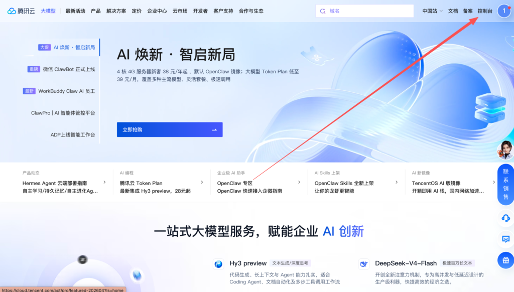 如上图所示,点击右上角“控制台”进入控制台。